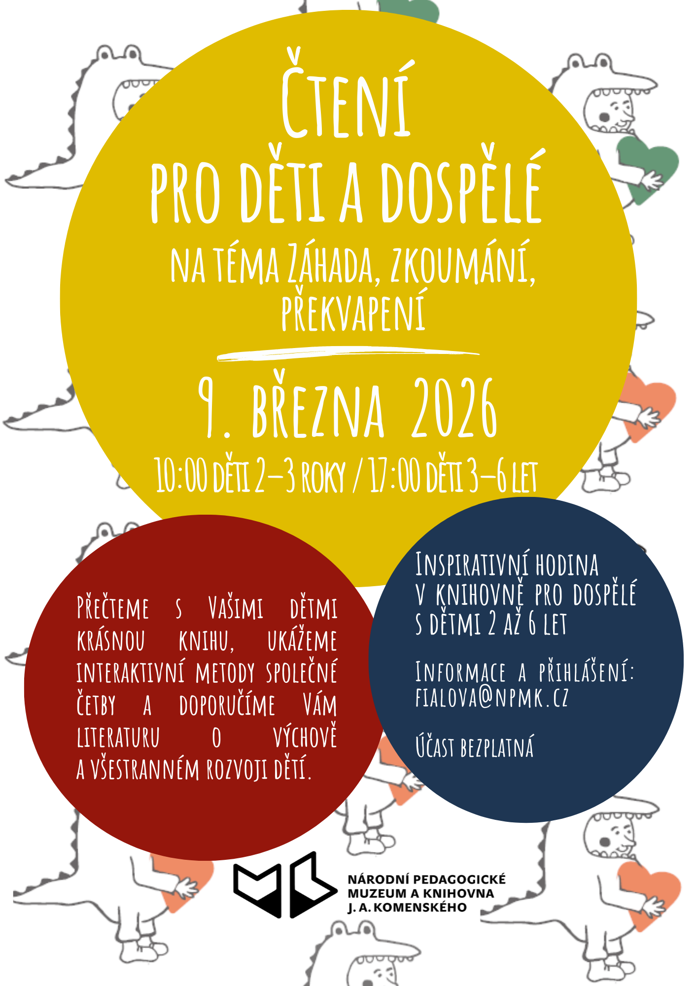 Srdečně zveme na další čtenářské setkání dospělých a dětí zhruba do šesti let, které se uskuteční v pondělí 9. března 2026. Přečteme s dětmi novou českou knihu, ukážeme literaturu z našeho fondu pro děti a budeme číst knížku o záhadném tlačítku objeveném v lese.